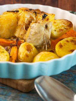 Stockfisch mit Kartoffeln im Backofen - Bacalhau no Forno