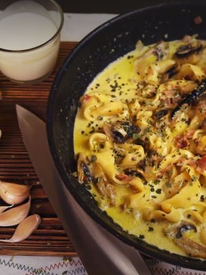 Nudeln mit Champignon Sahnesauce