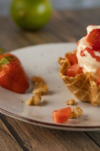 Das Parfait kann dann sofort serviert werden und muss nicht erst aufgetaut werden.